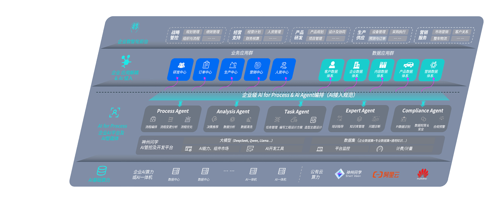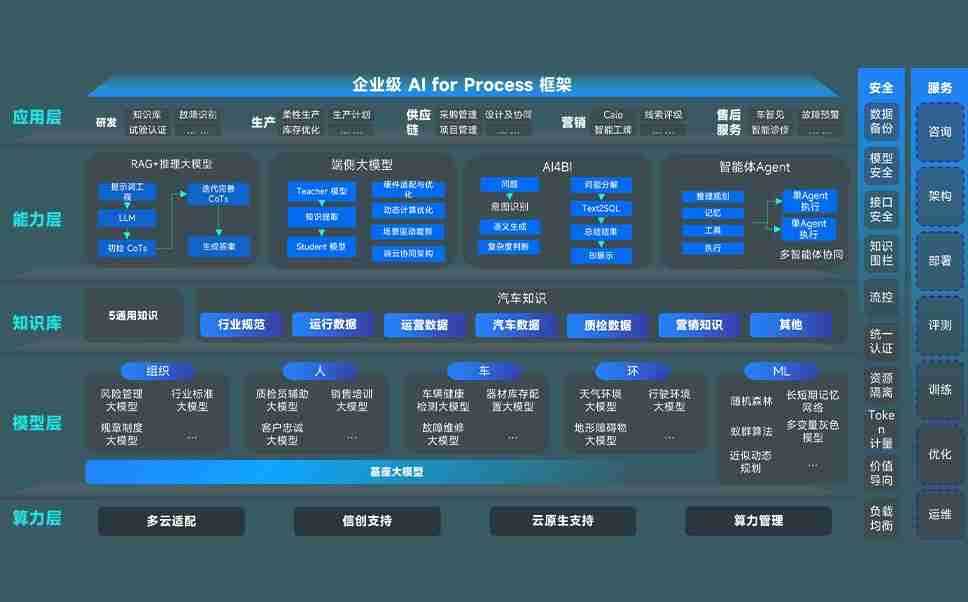 端到端的一站式AI工作空间深度融合了从企业战略规划到日常经营的全流程业务板块,,,定向解决车企内部领域多、、部门多、、、、链条长、、、场景碎片化等难题,,,,支持车企快速构建以AI为核心的生产力写作体系,,,,实现任务执行与AI能力的无缝集成与交互