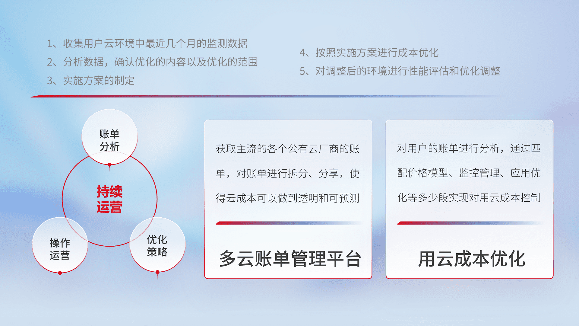 监控业务系统资源开销,,对资源的消耗精确计量,,,实现费用的透明化管理,,,,不断提升资源使用率,,,调整资源购买方式,,,,降低资源费用成本,,用云成本可预测、、、用云费用可优化,,云资源配额有据可依。。